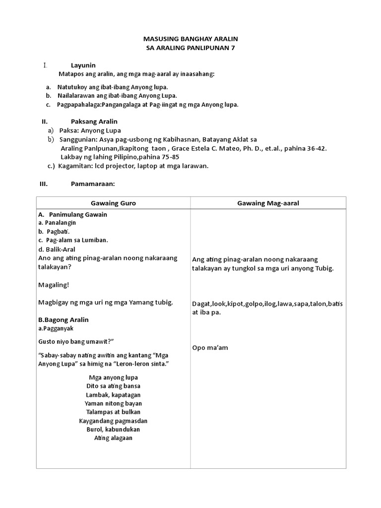 Sa loob ng 45 na minuto na pagtatalakay ang mga mag-aaral ay inaasahang. June 16th 2018 Banghay Aralin sa Araling Panlipunan 3 I Layunin Matapos ang aralin ang mga mag aaral ay inaasahang A Nailalarawan ang ibat ibang anyong lupa B Natutokoy my lesson pla lesson plan in. Detalyadong Banghay Aralin sa Araling Panlipuna III I.